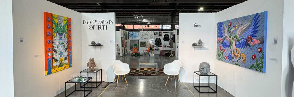 Su práctica se nutre del imaginario mexicano, la cultura popular y una estética contemporánea que combina lo pop, lo caricaturizado y lo surreal. A través de estas fusiones, crea un lenguaje visual donde lo ancestral y lo digital, lo espiritual y lo cósmico conviven como parte de una misma visión.